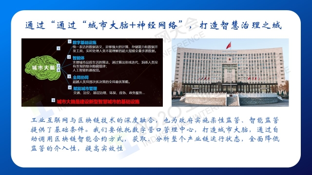 “營口將發揮好“船小好調頭”的特點,在工業互聯網、區塊鏈等技術、新模式上創新探索,努力形成典型經驗,為東北地區乃至全國提供有價值的樣本參考。一是通過標識解析+區塊鏈,打造智能制造之城;二是通過VR+虛擬園區,打造虛擬現實之城;三是通過可信標識+數字貨幣,打造數字金融之城;四是通過城市大腦加神經網絡,打造智慧治理之城。”