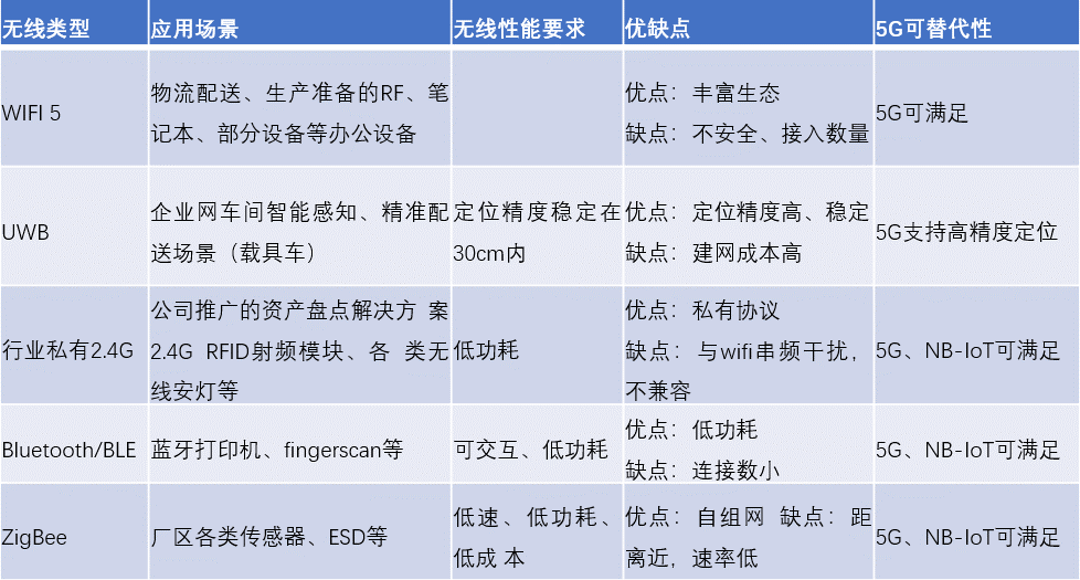 表1:5G對(duì)其他工業(yè)無線網(wǎng)絡(luò)技術(shù)可替代性分析