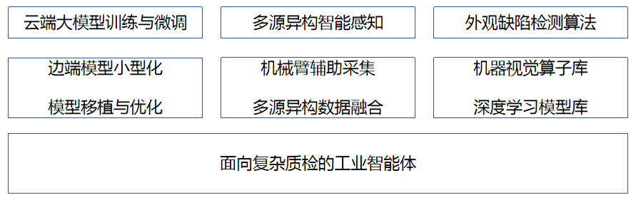 針對高精度模具、汽車零配件等異形件的視覺檢測需求,開展工業智能體關鍵技術研究,主要包括:
