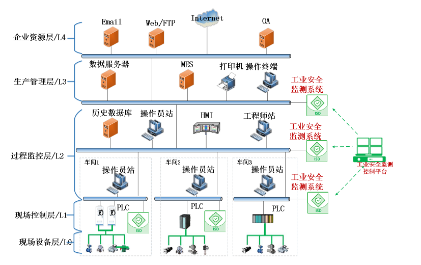 工業(yè)安全監(jiān)測系統(tǒng)(ISD)是針對工控系統(tǒng)網(wǎng)絡(luò)環(huán)境進(jìn)行異常監(jiān)測、威脅發(fā)現(xiàn)和安全審計(jì)的一體化產(chǎn)品。產(chǎn)品通過旁路方式部署,對工控系統(tǒng)的運(yùn)行數(shù)據(jù)進(jìn)行被動無損采集,實(shí)時發(fā)現(xiàn)信息安全威脅和其造成的系統(tǒng)運(yùn)行異常。產(chǎn)品可部署于生產(chǎn)管理層、過程監(jiān)控層、現(xiàn)場控制層,協(xié)助運(yùn)營人員及時發(fā)現(xiàn)問題并響應(yīng)處理,提升工業(yè)生產(chǎn)連續(xù)性水平。