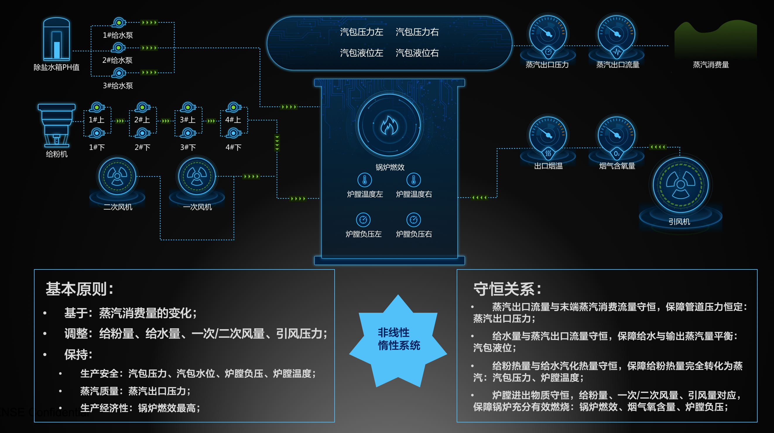 鍋爐的生產控制是整個熱能生產的核心環節,也是最復雜的生產工藝過程,如下圖展示了鍋爐控制的核心抽象: