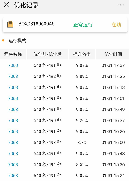 圖7 優(yōu)化記錄截圖
