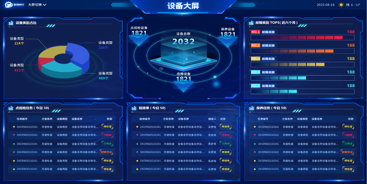 設備資產(chǎn)是企業(yè)重要的資產(chǎn),良好的設備管理可以幫助企業(yè)精準、實時的掌握重要資產(chǎn)情況,同時有助于延長設備的生命周期。六安一六八基于5G互利網(wǎng)技術,建設設備管理系統(tǒng),包括設備臺賬、設備維修、設備點巡檢、設備保養(yǎng)、設備IOT,實現(xiàn)推設備的在線管理。及時精準掌握設備的運行情況、維修情況、告警情況等各種企業(yè)關注的要素,間接幫助企業(yè)實現(xiàn)生產(chǎn)成本的降低效果。