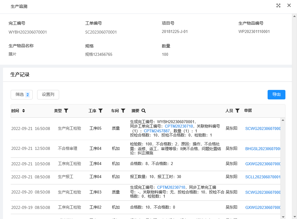 實施效果:通過追溯到生產(chǎn)過程中的人、機、料、法、環(huán)等相關信息,極大地提高了生產(chǎn)異常等情況的追溯效率及追溯準確性。提高的生產(chǎn)及相關問題處理效率,更清晰的知曉問題關鍵節(jié)點,提升了生產(chǎn)效率,降低了物料損耗、運營成本及不合格率。
