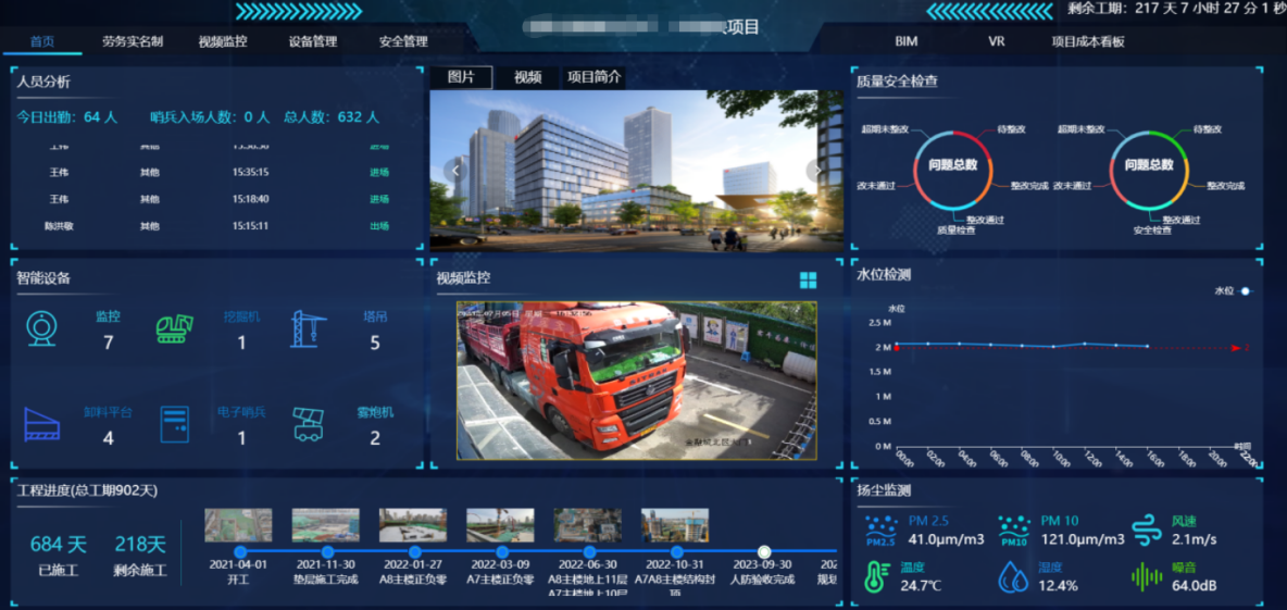 該項目針對工地實際業務需求及痛點,采用物聯網、BIM、3S、5G、人工智能、云計算、VR等技術,在現有系統上進行智能監測、智能預警等工地相關功能開發擴展。平臺基于海量工地數據實現實時智能分析,為工地安全風險預警提供全天候支持;結合BIM、虛擬現實技術,打造數字化全景平臺,輔助經營管理決策、服務流程優化,從多維度提升管理效率。