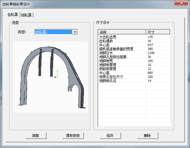 齒輪罩以及鏈輪罩均通過參數化方式定義結構模型,其設計界面如下: