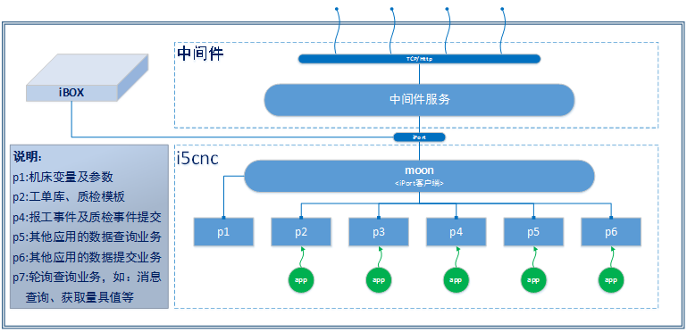 采用iport協議進行app與上層服務間的數據通信;MES下發生產任務給目標設備,經過中間件將數據進行加密,并推送到該設備連接的iBOX,由BOX推送到指定設備,設備系統內的工單管理app將數據解密后顯示。