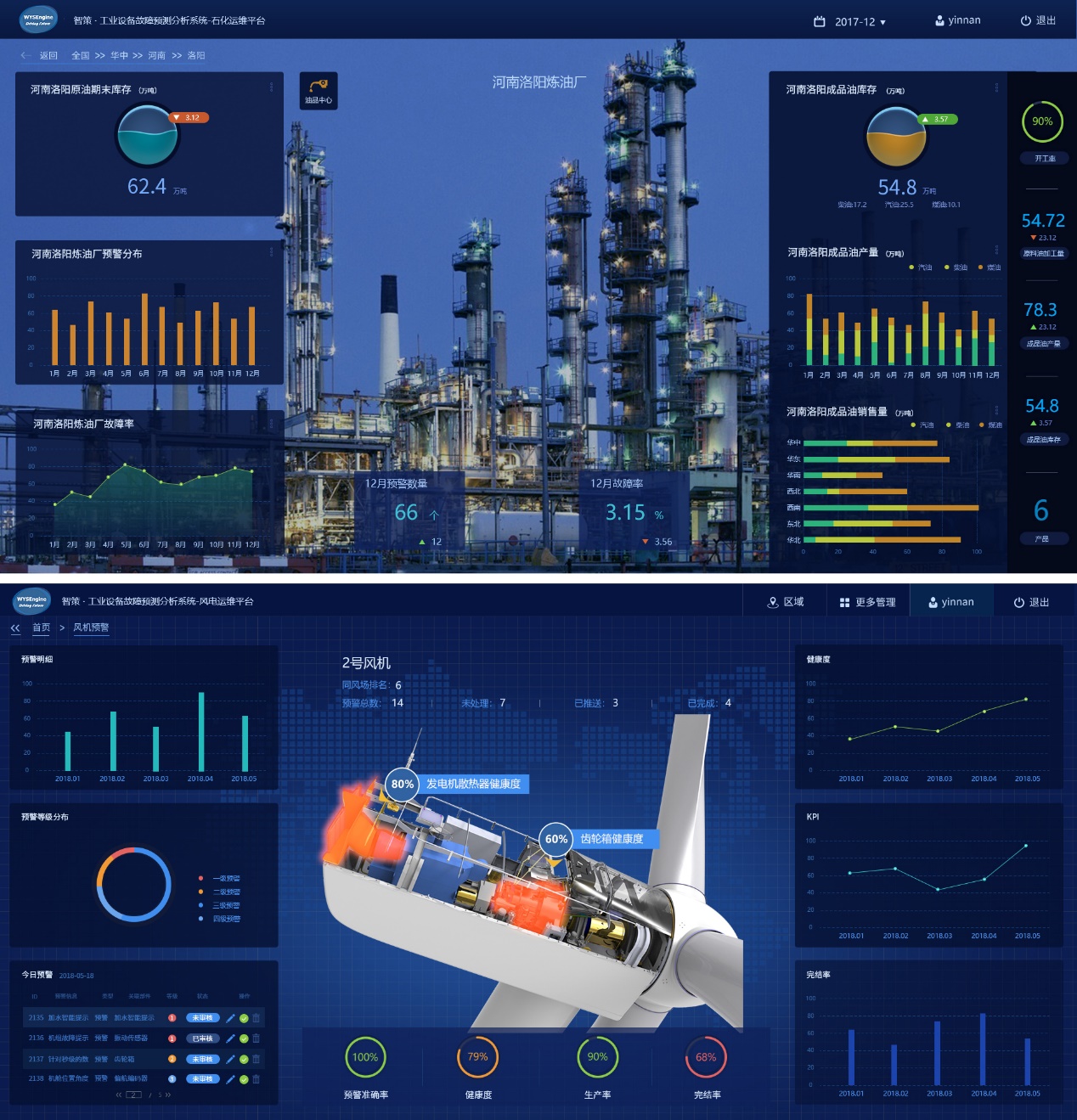 本產品覆蓋了數據的采集、數據的機器學習建模訓練、預測分析模型運行環境、模型庫管理、設備健康度分析功能、故障預測模型創建和分析功能、故障樹分析、處理措施推薦及窗口期功能等主要解決了如下問題:降低故障頻次及非計劃性停機時間、提升設備產能、對設備進行全生命周期的管理。