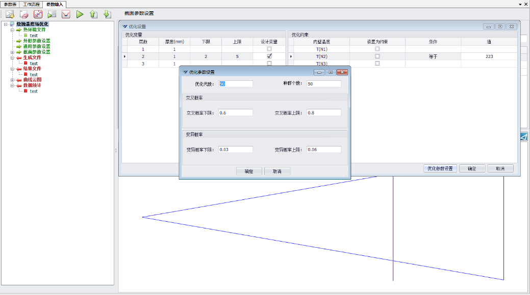 軟件嵌入多維(≥5維)優(yōu)化算法,可設(shè)置的優(yōu)化目標(biāo)和約束條件,進(jìn)行設(shè)計(jì)變量的優(yōu)化設(shè)計(jì)。