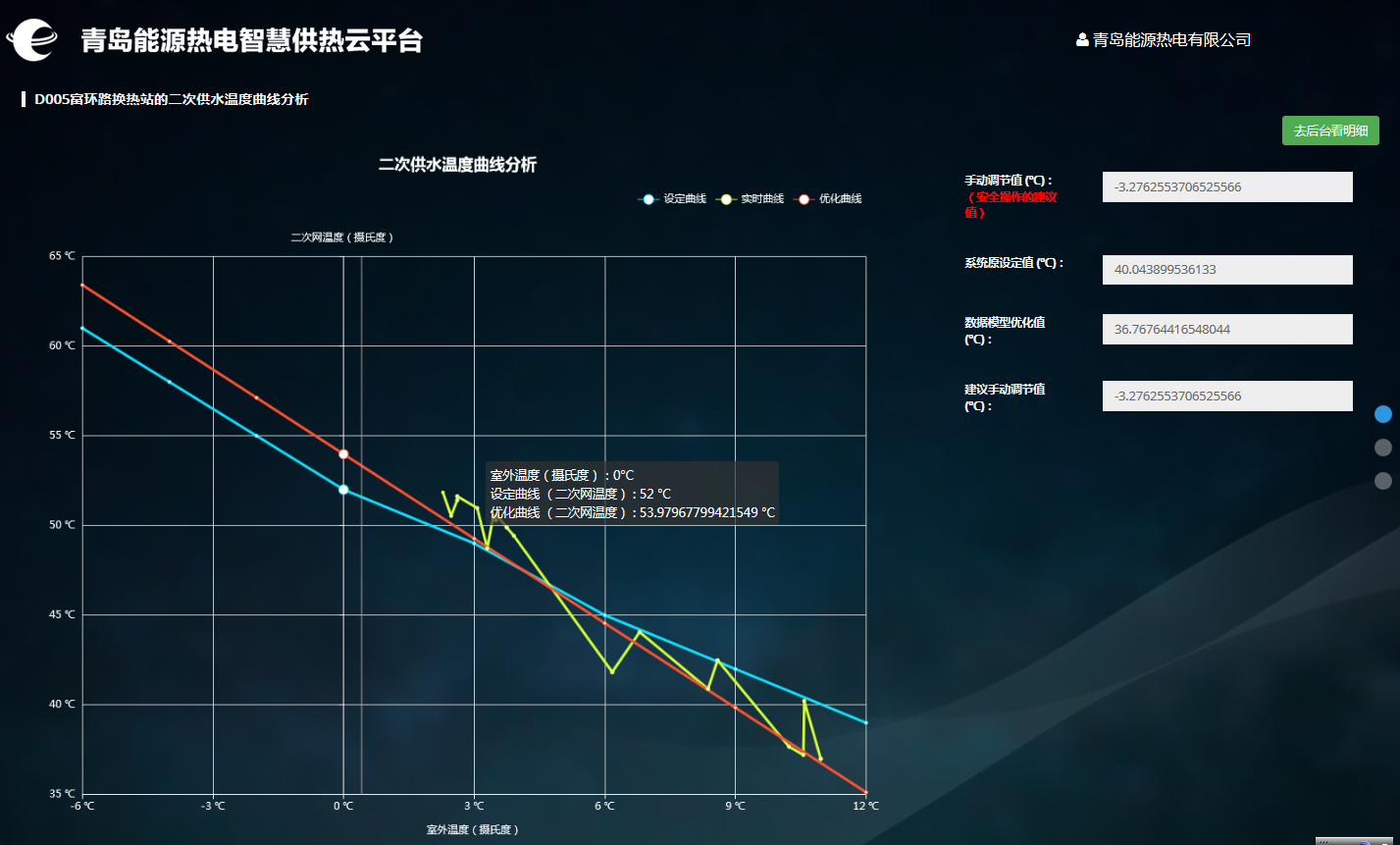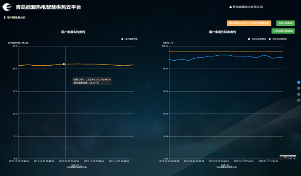 提供室溫合格率與室溫的可視化,通過數據脫敏,實時監測供溫質量情況,包括均溫,達標率,有利于運行管理粗,如下圖所示。