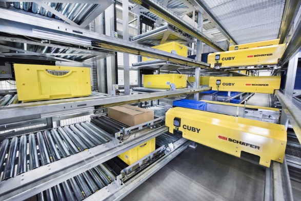在堆貨貨架區域,傳統采用人工或人工操作叉車取放貨物。自動貨架Shuttle(見圖1-6),根據后臺指令負責在立體貨架區域的貨物裝卸操作。
