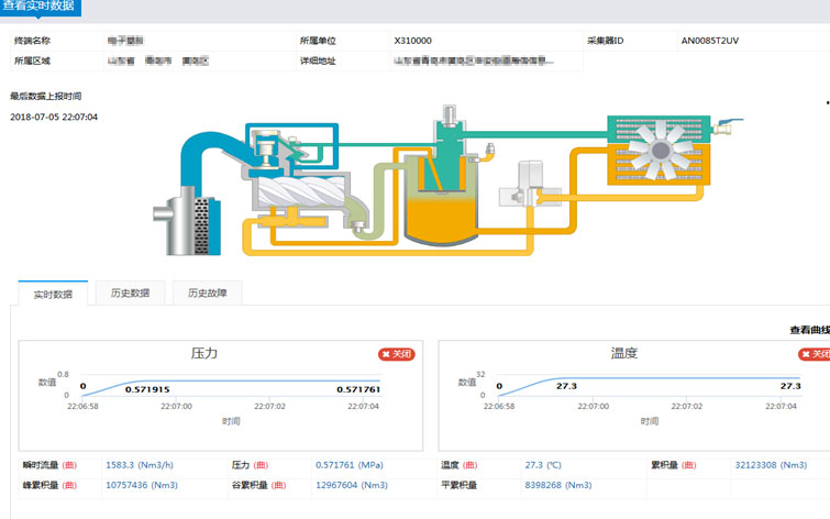 在氣站運維管理上,通過物聯網監控系統對空壓機、管道的實時監控,實現了以下功能: