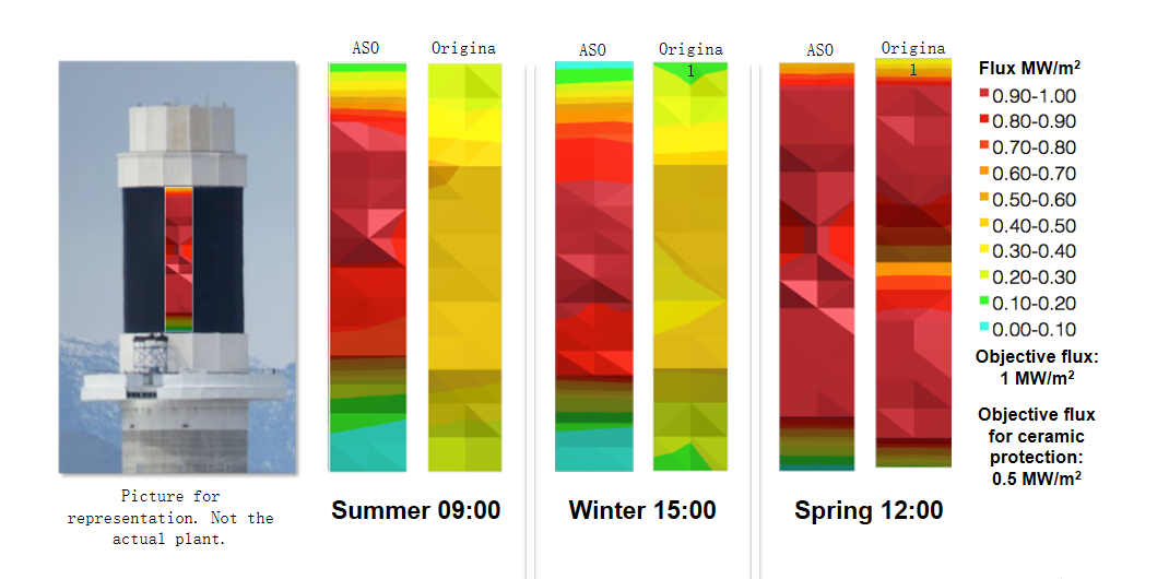 最大限度地提高總的熱輸出和攝入潛力,實(shí)現(xiàn)均勻的吸熱器溫度,降低熱應(yīng)力并延長(zhǎng)吸熱器壽命。最大限度地加快吸熱器預(yù)熱時(shí)間,使電廠更快的啟動(dòng)。