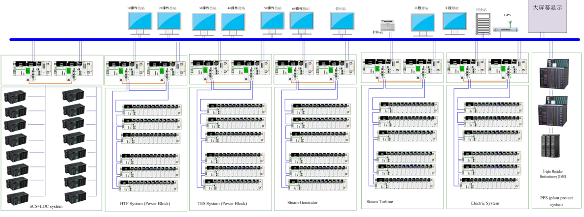 ? 發(fā)電島及儲(chǔ)換熱系統(tǒng):8,900 IO,PES (5 套M580 HSBY) + 207 IO, Triconex