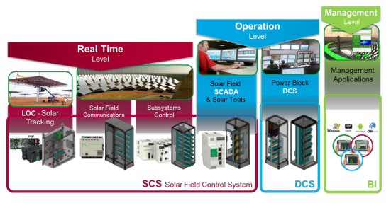 本解決方案適用于槽式、塔式、菲涅爾式光熱發(fā)電廠。提供了從太陽島鏡場(chǎng)控制、儲(chǔ)換熱控制、發(fā)電島控制、全廠運(yùn)行優(yōu)化控制、仿真模擬系統(tǒng)以及在塔式類型電廠里的校準(zhǔn)控制等等。
