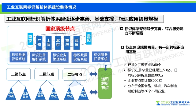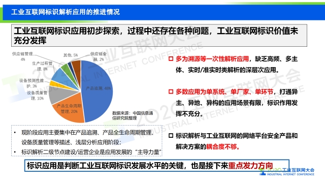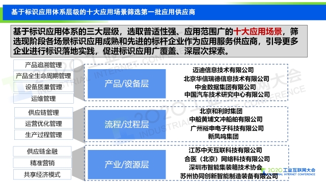 在2020工業互聯網大會“工業互聯網標識”主題論壇上,中國信息通信研究院工業互聯網和物聯網研究所副總工程師羅松分享了我國工業互聯網標識解析體系建設情況及中國信息通信研究院在建立標識應用供應商體系方面所做的工作,會上還發布了基于標識應用體系三大層級十個應用場景的首批工業互聯網標識應用供應商合作伙伴名單。
