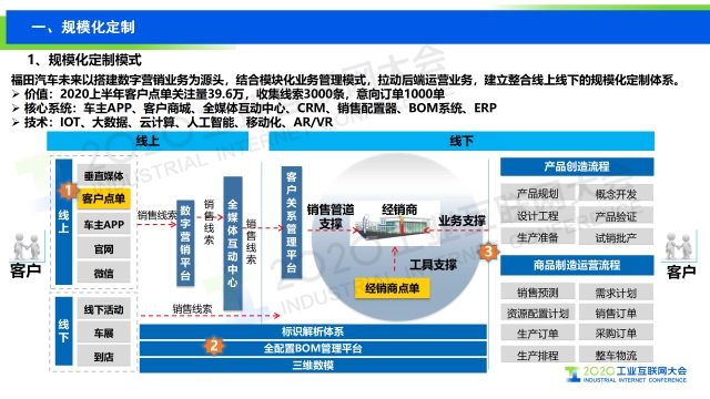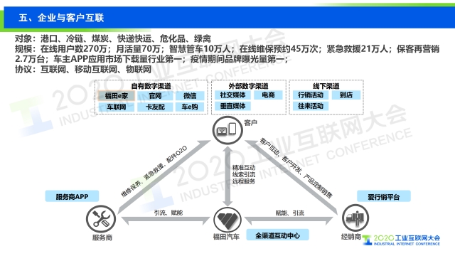 在2020工業互聯網大會工業互聯網“5G與工業互聯網融合發展”主論壇上,北汽福田汽車集團副總經理楊國濤發表題為《工業互聯網賦能商用車第一品牌》的演講,分享福田汽車對工業互聯網的探索及實踐經驗。