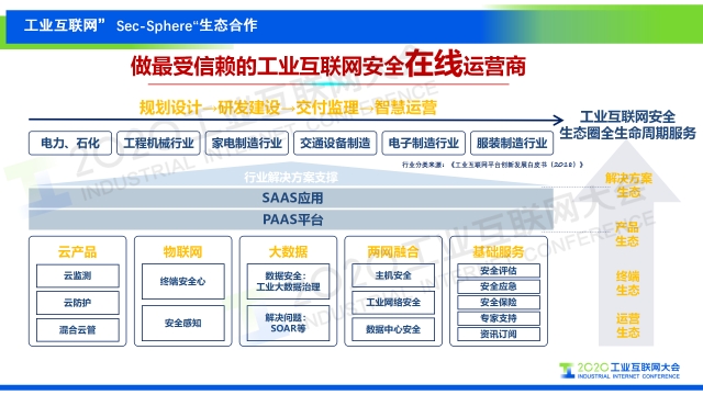 “在安恒過去的實踐過程中,我們發(fā)現(xiàn)困擾中小企業(yè)數(shù)字化改造、上云上平臺最大的問題就是解決服務(wù)商與企業(yè)之間的信任問題,我們針對性的推出一站式安全服務(wù)平臺,與我們的工業(yè)互聯(lián)網(wǎng)的工程服務(wù)商或者企業(yè)數(shù)字化轉(zhuǎn)型服務(wù)商共同去運營這樣的平臺,把已有的安全能力SaaS化、軟件化、虛擬化,把我們的安全助手,巡檢、服務(wù)、監(jiān)管、應(yīng)急能力,打造成公共資源,為下游的各個行業(yè)去賦能,以降低中小企業(yè)在享受安全服務(wù)的成本。這樣也能夠讓他們更好的構(gòu)建信任關(guān)系,為整個體系的發(fā)展和建設(shè)甚至為以后的工業(yè)企業(yè)上云上平臺做好保護(hù)工作。”