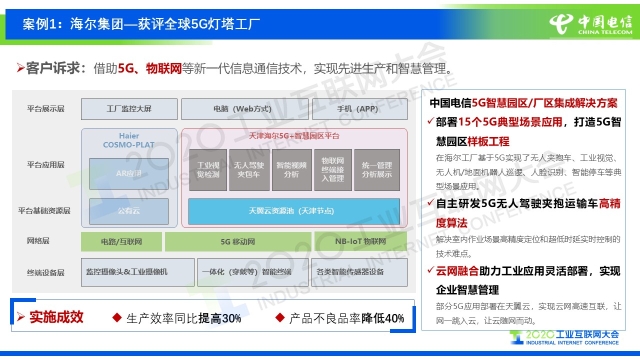 “中國電信為工業企業打造了一個高質量的外網——CN2-DCI,它同時也是連接數據中心之間的一個高帶寬的高質量網絡。它可以覆蓋全國幾乎所有的地市,同時連接了中國電信100多個云計算中心和200多個大型的主流IDC,這樣網和云就緊密連接在一起,而且是安全的連接在一起。同時,這個網絡還可以提供泛在接入,包括固網的接入以及移動網的接入。除此之外,CN2-DCI網絡還提供了一些新型的技術,像SRv6、EVPN,這些新型的技術在這個網絡里實現以后,使得我們傳統的IP網實現了更加快捷的轉發和服務能力,可以一跳入云,更好的為工業企業服務。”