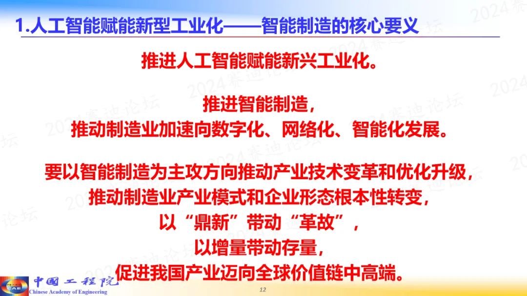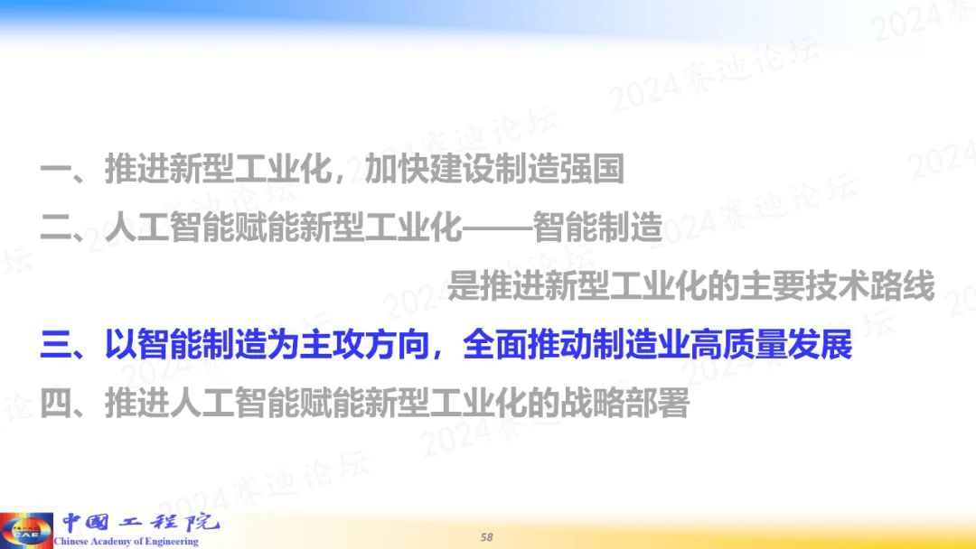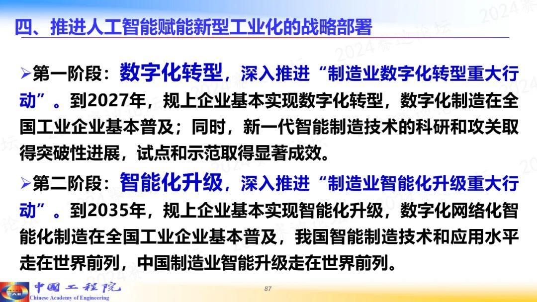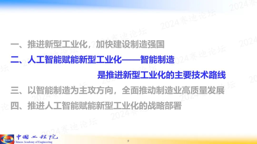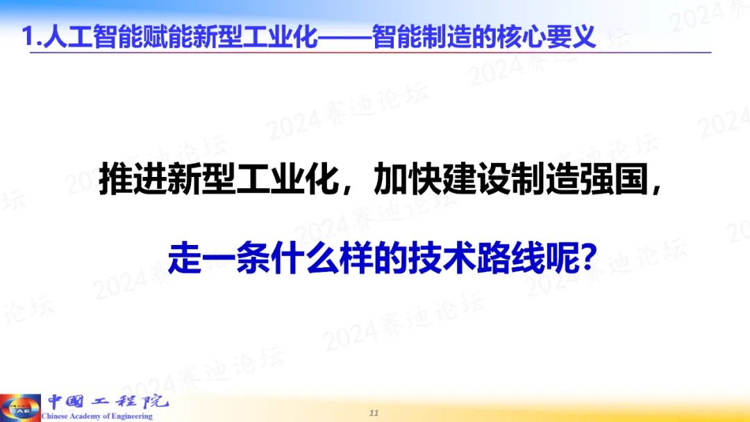“推進新型工業化,加快建設制造強國,走一條什么樣的技術路線?要推進人工智能賦能新型工業化。”周濟表示。