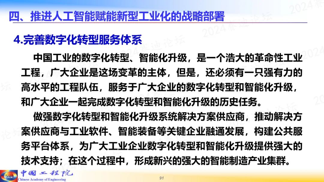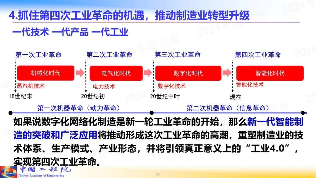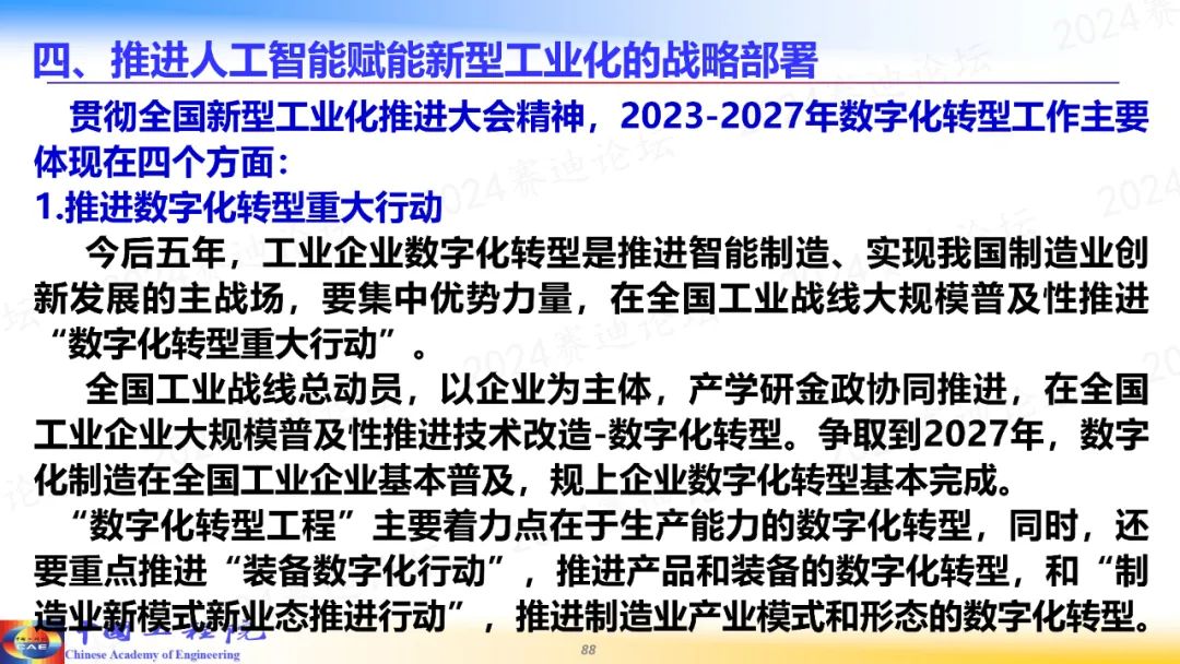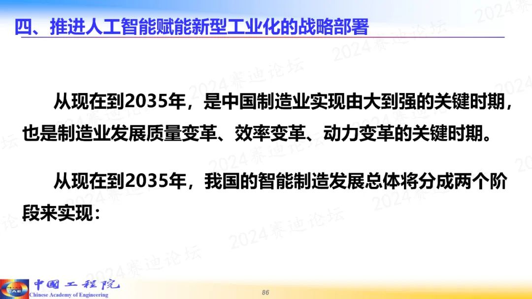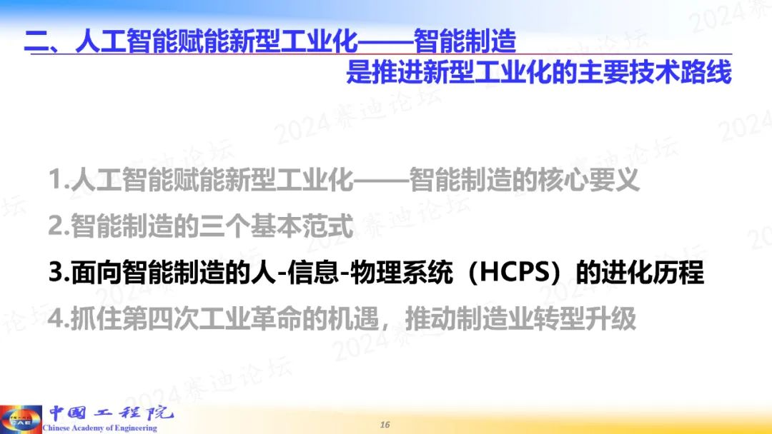 “推進新型工業化,加快建設制造強國,走一條什么樣的技術路線?要推進人工智能賦能新型工業化。”周濟表示。