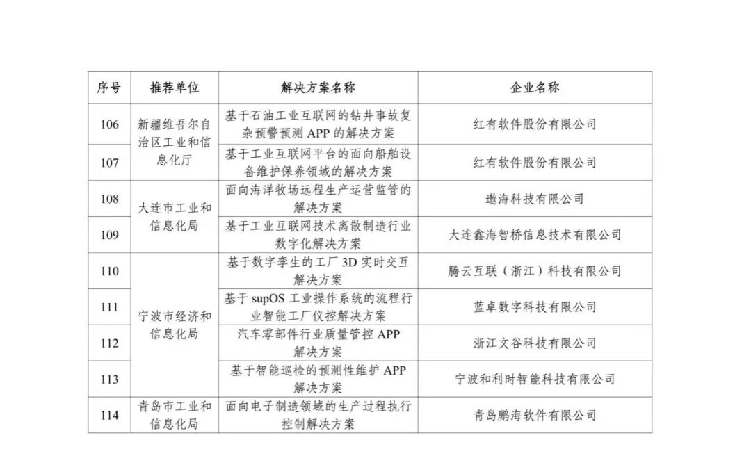 關于公布2022年工業互聯網APP優秀解決方案名單的通知