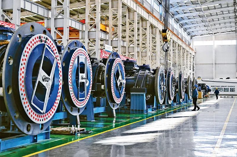 綠色低碳是新型工業化的生態底色。近年來,內蒙古自治區錫林郭勒盟依托風、光資源優勢,大力發展風電裝備等新能源制造產業。圖為2024年5月15日,工人在錫林郭勒盟明陽新能源有限公司總裝車間作業。 新華社記者 李志鵬/攝
