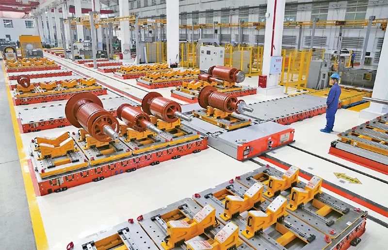 發展新質生產力不是忽視、放棄傳統產業,是要用先進技術改造提升傳統產業。圖為2024年2月29日,在哈電集團佳木斯電機股份有限公司的高壓電機數字化裝配車間,工作人員在查看數字化設備運行情況。 新華社記者 王建威/攝