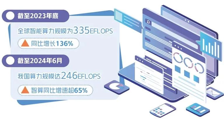 人工智能高速發(fā)展的背后,是算力需求的爆發(fā)式增長。近年來,我國算力基礎(chǔ)設(shè)施發(fā)展成效顯著,梯次優(yōu)化的算力供給體系初步構(gòu)建,算力基礎(chǔ)設(shè)施綜合能力明顯提升,算力產(chǎn)業(yè)不斷創(chuàng)新發(fā)展,持續(xù)賦能千行百業(yè)。 工信部發(fā)布的數(shù)據(jù)顯示,我國算力總規(guī)模位于世界前列;互聯(lián)互通縱深推進(jìn),城域算力節(jié)點(diǎn)間1ms(毫秒)時(shí)延保障能力逐漸形成,區(qū)域集群到周邊主要城市間5ms時(shí)延保障能力廣泛覆蓋,國家樞紐節(jié)點(diǎn)間20ms時(shí)延保障能力全面實(shí)現(xiàn);全國算力中心平均電能利用效率(PUE)降至1.47,創(chuàng)建國家綠色數(shù)據(jù)中心246個(gè),超140個(gè)算力中心綠色低碳等級達(dá)到4A級以上標(biāo)準(zhǔn)。 值得關(guān)注的是,我國吸引外資企業(yè)、民營企業(yè)等積極參與“算力產(chǎn)業(yè)發(fā)展方陣”,形成資源共享、平臺共建、價(jià)值共創(chuàng)的產(chǎn)業(yè)發(fā)展新生態(tài)。工業(yè)、教育、醫(yī)療、能源等多個(gè)領(lǐng)域算力應(yīng)用項(xiàng)目超過1.3萬個(gè),有力支撐人工智能快速發(fā)展,為在更大范圍、更高水平上共享數(shù)字化發(fā)展成果奠定堅(jiān)實(shí)基礎(chǔ)。 據(jù)中國信息通信研究院測算,截至2023年底,全球算力基礎(chǔ)設(shè)施總規(guī)模達(dá)到910EFLOPS,同比增長40%。美國、中國算力基礎(chǔ)設(shè)施規(guī)模位列前兩名,算力全球占比分別為32%、26%。 與此同時(shí),我國算力結(jié)構(gòu)不斷調(diào)整,智算規(guī)模增長勢頭強(qiáng)勁;存力規(guī)模持續(xù)擴(kuò)大,先進(jìn)存力占比不斷提升;運(yùn)力質(zhì)量顯著提升,網(wǎng)絡(luò)設(shè)施不斷升級。截至2024年6月,我國算力規(guī)模達(dá)246EFLOPS,智算同比增速超過65%。 “綜合算力作為集算力、存力、運(yùn)力于一體的新型生產(chǎn)力,是加速我國數(shù)字經(jīng)濟(jì)發(fā)展的核心動能。”中國信息通信研究院院長余曉暉說。 華為公司副總裁、數(shù)據(jù)存儲產(chǎn)品線總裁周躍峰認(rèn)為,我國數(shù)字化應(yīng)用進(jìn)程發(fā)展很快,存、算、網(wǎng)要協(xié)同發(fā)展,為我國提供可持續(xù)供應(yīng)的算力基礎(chǔ)設(shè)施,為世界提供更好選擇。華為通過算網(wǎng)存融合的一體化設(shè)計(jì),打造AI時(shí)代的算力底座,賦能政務(wù)、醫(yī)療、金融、制造等重點(diǎn)行業(yè),加速社會及千行萬業(yè)智能化轉(zhuǎn)型。