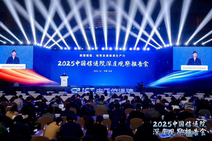 2024年12月23日,2025中國信通院深度觀察報告會主論壇在北京舉辦,本次會議主題為 “數智賦能,培育發展新質生產力”。工業和信息化部黨組成員、副部長張云明出席報告會并致辭,中國社會科學院大學教授、國務院原副秘書長江小涓,中國工程院院士鄔賀銓分別作主旨報告。