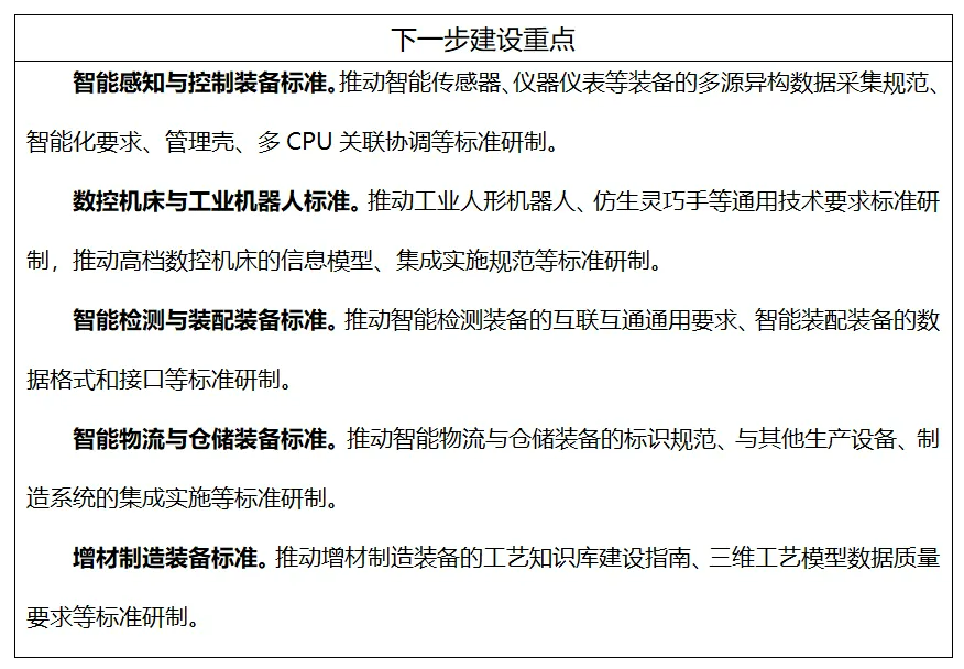 主要包括智能檢測(cè)與裝配裝備的組成要素、參數(shù)配置、功能和性能要求等通用技術(shù)標(biāo)準(zhǔn);數(shù)據(jù)接口、適配要求、集成規(guī)范等接口與通信標(biāo)準(zhǔn)。