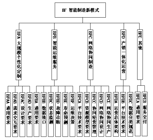 大規(guī)模個(gè)性化定制標(biāo)準(zhǔn)主要包括通用要求、需求交互要求、設(shè)計(jì)要求、生產(chǎn)要求等標(biāo)準(zhǔn);智能運(yùn)維服務(wù)標(biāo)準(zhǔn)主要包括通用要求、數(shù)據(jù)接口、狀態(tài)監(jiān)測(cè)、故障診斷、壽命預(yù)測(cè)、運(yùn)維決策等標(biāo)準(zhǔn);網(wǎng)絡(luò)協(xié)同制造標(biāo)準(zhǔn)主要包括平臺(tái)技術(shù)要求、資源模型要求、協(xié)同經(jīng)營(yíng)管理、網(wǎng)絡(luò)協(xié)同設(shè)計(jì)、網(wǎng)絡(luò)協(xié)同生產(chǎn)等標(biāo)準(zhǔn);產(chǎn)銷一體化運(yùn)營(yíng)主要包括運(yùn)營(yíng)總體架構(gòu)、平臺(tái)技術(shù)要求、數(shù)據(jù)分類規(guī)范等標(biāo)準(zhǔn);其他主要包括上述四類以外的智能制造新模式的通用要求和服務(wù)交付等標(biāo)準(zhǔn)。