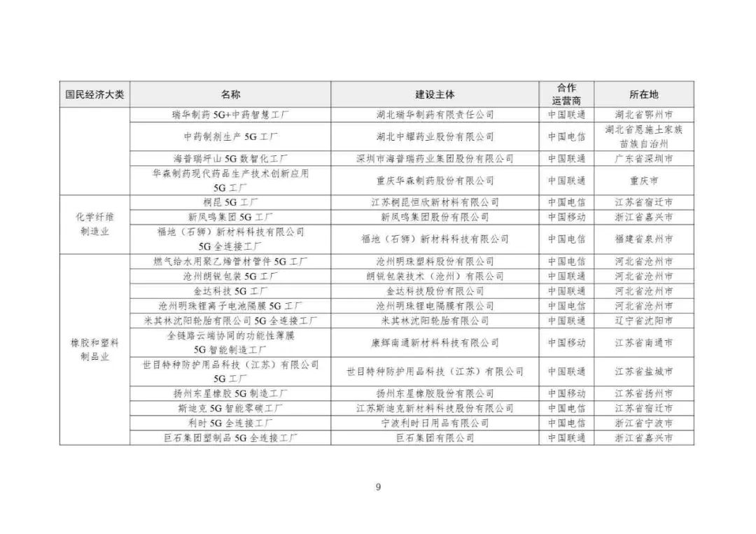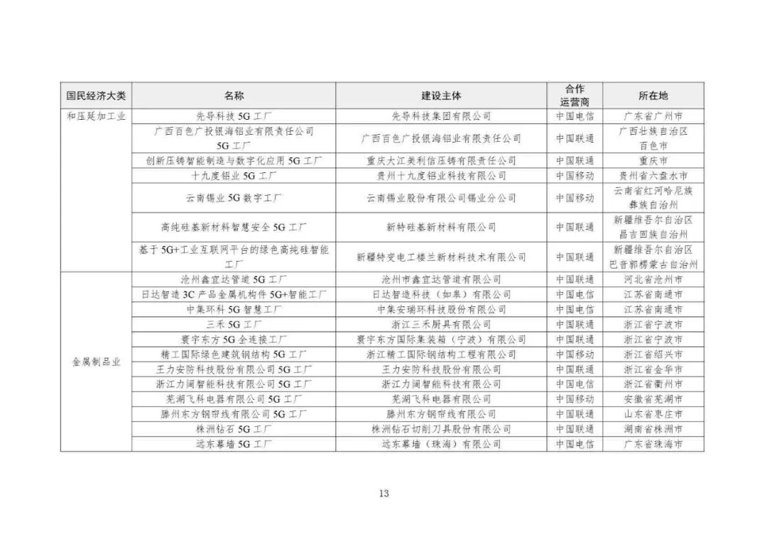 2025年5G工廠名錄:
