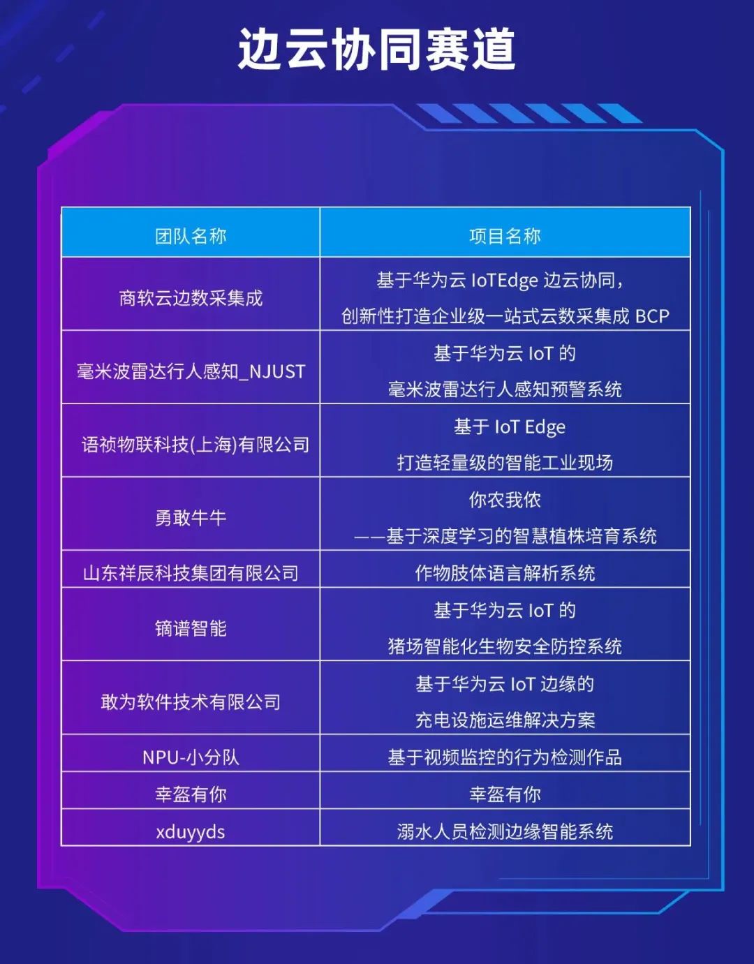 恭喜以下團隊晉級第二屆邊緣計算開發者大賽全國總決賽!