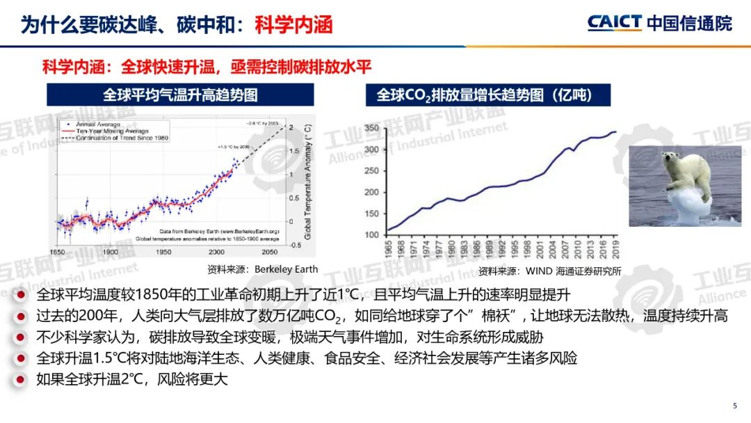 本期為您介紹由中國信息通信研究院泰爾終端實驗室副總工盧春陽分享的《碳達峰碳中和基礎知識和政策解讀》。盧春陽講解了碳達峰碳中和的科學內涵、經濟內涵和重要意義,分析了國內外能源消費結構和我國碳排放的現狀,以及碳達峰碳中和面臨的挑戰,解讀了我國碳達峰碳中和“1+N”政策體系,重點講解了《2030年前碳達峰行動方案》具體重點行動以及工業、建材和有色行業碳達峰實施方案的主要內容。