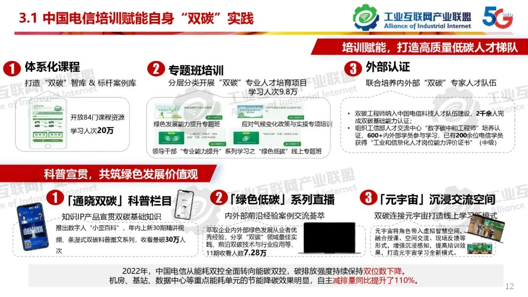 本期為您帶來由工業互聯網產業聯盟碳達峰碳中和組副主席、中國電信工業事業部總裁助理仲肇中分享的《高質量雙碳實踐,培訓賦能》。工業雙碳要貫徹“立足我國能源資源稟賦,堅持先立后破,有計劃分步驟實施碳達峰行動?!?,深刻理解“實現碳達峰碳中和是一場廣泛而深刻的經濟社會系統性變革”。政府官員、企業各級人員、雙碳服務提供商都應參加“雙碳”系統培訓。“雙碳”培訓機構在做好培訓的基礎上,要努力成為“雙碳”實踐經驗分享平臺、實踐模式探索平臺、供需對接的交流平臺、新技術、研發成果轉化平臺、雙碳各領域交叉融合創新平臺。
