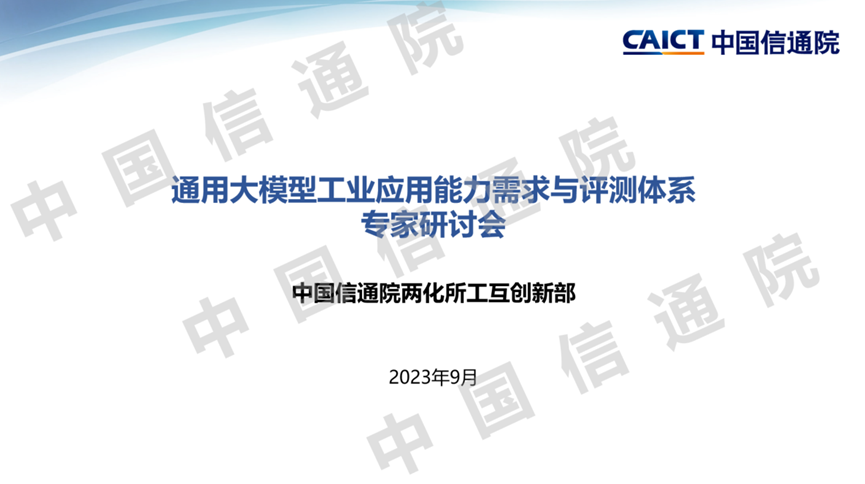 2023年9月21日,由中國信通院兩化所主辦的“通用大模型工業(yè)應(yīng)用能力需求與評測體系”專家研討會在線上成功舉辦。參加會議的有百度、華為、騰訊、羚羊工業(yè)互聯(lián)網(wǎng)、樹根互聯(lián)、智昌科技、復(fù)旦大學(xué)、阿里云、北京通用人工智能研究院等相關(guān)機構(gòu)。