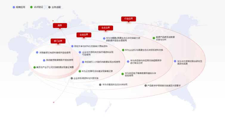 華為公司業(yè)務(wù)分布在170多個國家和地區(qū),隨著數(shù)字化的發(fā)展,華為需要通過數(shù)據(jù)的高效聯(lián)接、跨域使用控制、安全流通支撐復(fù)雜業(yè)務(wù)的全球協(xié)同?;诖?,華為希望充分融合企業(yè)內(nèi)外部數(shù)據(jù),基于清算促進(jìn)數(shù)據(jù)價值的量化和分配,形成數(shù)據(jù)產(chǎn)生、交換、消費(fèi)的良性循環(huán),充分釋放數(shù)據(jù)價值。
