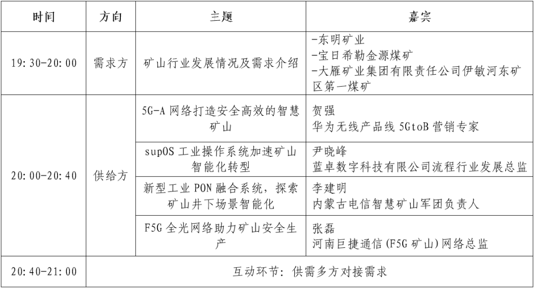 本次沙龍將由聯(lián)盟副秘書長張東主持,擬邀請呼倫貝爾東明礦業(yè)、寶日希勒金源煤礦、敏東一礦負責人現(xiàn)場分享行業(yè)需求,同時邀請到了華為、中國電信、浙江藍卓、河南巨捷通信等企業(yè)專家介紹其在礦山領域數(shù)智化賦能的的實踐經(jīng)驗,供需雙方將就行業(yè)現(xiàn)狀、實踐路徑、痛點難點現(xiàn)場互動交流,也歡迎各成員單位積極參與。