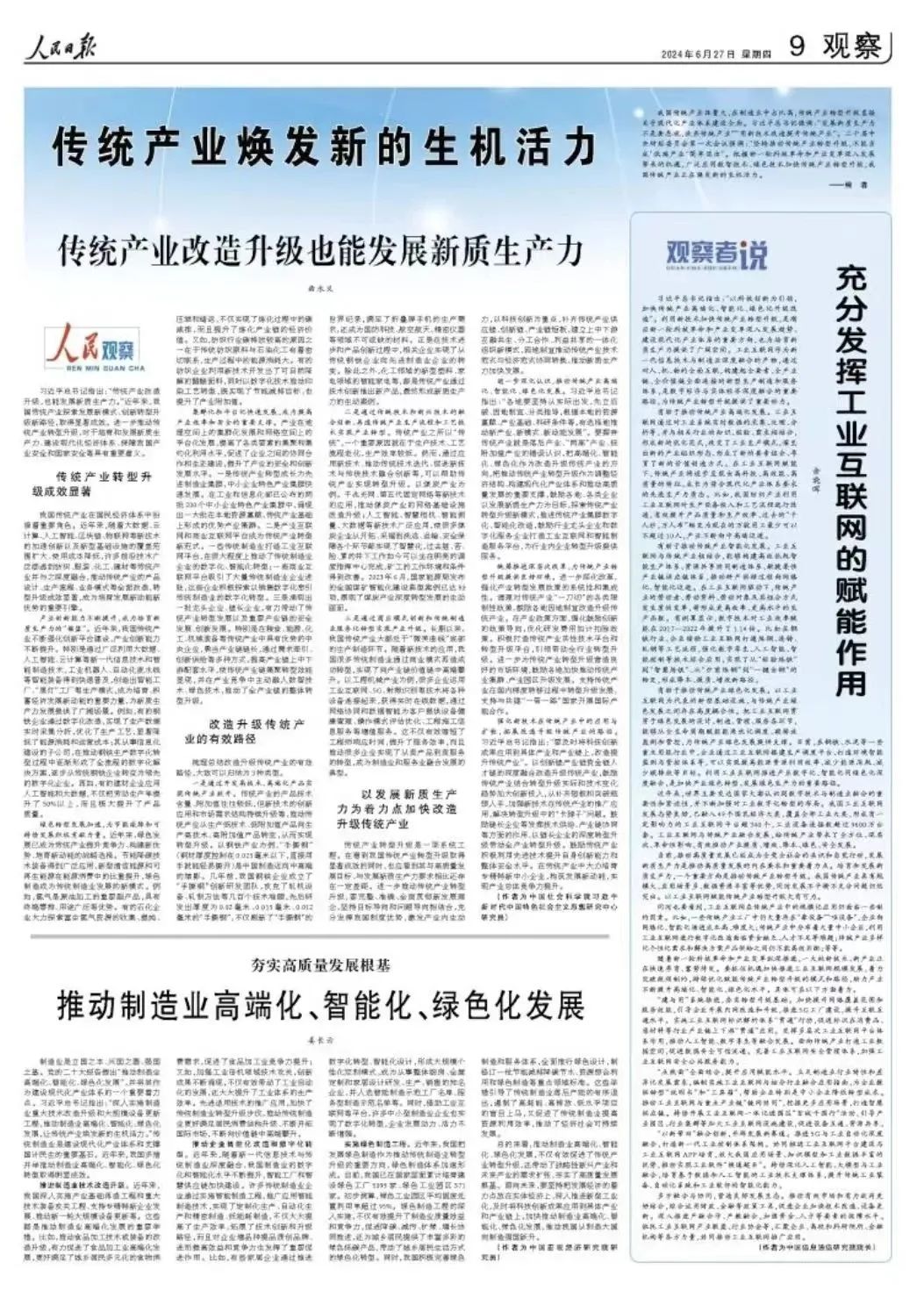 習(xí)近平總書記指出:“以科技創(chuàng)新為引領(lǐng),加快傳統(tǒng)產(chǎn)業(yè)高端化、智能化、綠色化升級改造”。利用新技術(shù)加快傳統(tǒng)產(chǎn)業(yè)轉(zhuǎn)型升級,是順應(yīng)新一輪科技革命和產(chǎn)業(yè)變革深入發(fā)展趨勢、建設(shè)現(xiàn)代化產(chǎn)業(yè)體系的重要方向,也為培育新質(zhì)生產(chǎn)力提供了廣闊空間。工業(yè)互聯(lián)網(wǎng)作為新一代信息技術(shù)與制造業(yè)深度融合的產(chǎn)物,通過對人、機、物的全面互聯(lián),構(gòu)建起全要素、全產(chǎn)業(yè)鏈、全價值鏈全面連接的新型生產(chǎn)制造和服務(wù)體系,是數(shù)字經(jīng)濟與實體經(jīng)濟深度融合的重要路徑,為傳統(tǒng)產(chǎn)業(yè)轉(zhuǎn)型升級提供了重要動力。