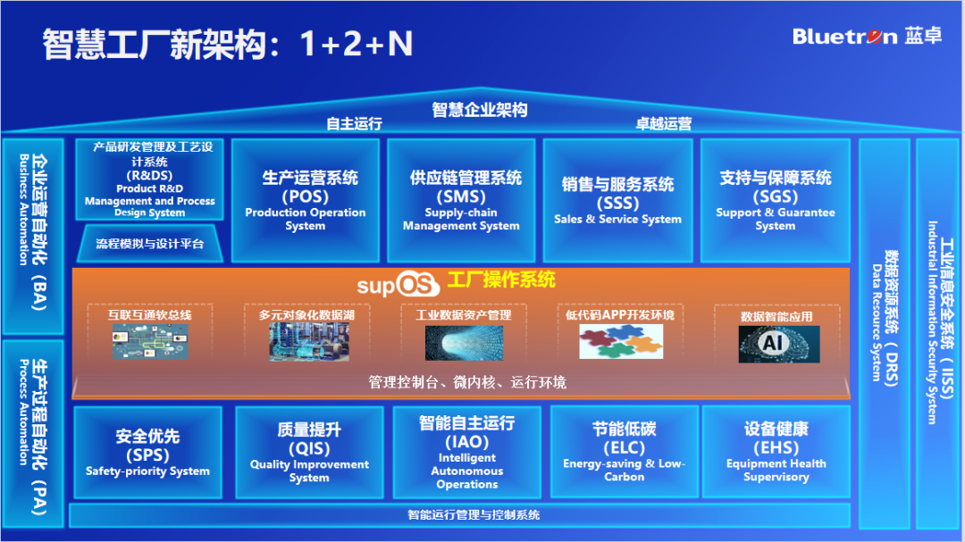 藍(lán)卓持續(xù)探索一條適合大規(guī)模、低成本推進(jìn)智能制造的路徑。2023年,藍(lán)卓創(chuàng)新打造“1+2+N”的智慧工廠新架構(gòu)。即1個(gè)工廠操作系統(tǒng)supOS;2個(gè)自動(dòng)化,一個(gè)是生產(chǎn)過(guò)程自動(dòng)化,一個(gè)是企業(yè)經(jīng)營(yíng)管理自動(dòng)化;以及N個(gè)工業(yè)軟件。基于supOS平臺(tái),對(duì)企業(yè)各類數(shù)據(jù)統(tǒng)一集中管理,貫通兩個(gè)自動(dòng)化,同時(shí),基于工業(yè)APP組合應(yīng)用,賦能企業(yè)數(shù)字化轉(zhuǎn)型。目前,該“中國(guó)方案”正揚(yáng)帆出海,成功應(yīng)用于沙特阿美、巴斯夫、Indorama、馬來(lái)西亞國(guó)家石油等海外龍頭企業(yè)。
