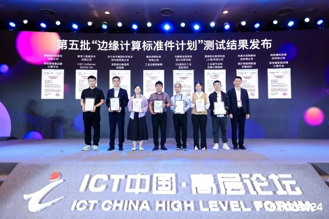 2024年9月26日,“邊緣計算標準件計劃”第五批測試結(jié)果在新型工業(yè)網(wǎng)絡(luò)創(chuàng)新論壇暨2024工業(yè)互聯(lián)網(wǎng)網(wǎng)絡(luò)創(chuàng)新大會上正式發(fā)布,由中國信息通信研究院總工程師敖立為通過測試企業(yè)頒發(fā)證書。