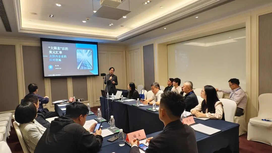首先,上海農(nóng)商銀行總行貿(mào)易金融部高級(jí)交易員經(jīng)緯分享了《“大降息”后的美元匯率及國(guó)內(nèi)企業(yè)的應(yīng)對(duì)措施》。經(jīng)緯介紹,美聯(lián)儲(chǔ)9月18日大幅降息50基點(diǎn)至4.75%-5%,以求提振勞動(dòng)力市場(chǎng),在大手筆開(kāi)啟降息周期的同時(shí)上調(diào)了失業(yè)率預(yù)測(cè)。人民幣對(duì)美元在9月19日開(kāi)盤(pán)后直線拉升逾400點(diǎn),反映出境內(nèi)伺機(jī)而動(dòng)的結(jié)匯力量。隨后,中國(guó)打出政策組合拳,包括貨幣市場(chǎng)降息、降準(zhǔn),房地產(chǎn)市場(chǎng)下調(diào)存量房利率、二套房首付比例,股票市場(chǎng)支持非銀機(jī)構(gòu)流動(dòng)性、創(chuàng)設(shè)股票回購(gòu)增持專(zhuān)項(xiàng)再貸款等一攬子政策,力爭(zhēng)完成全年經(jīng)濟(jì)增長(zhǎng)目標(biāo)。應(yīng)對(duì)外匯市場(chǎng)震蕩,經(jīng)緯推薦上海農(nóng)商銀行的外匯風(fēng)險(xiǎn)管理產(chǎn)品“掉期寶”“區(qū)間寶”等產(chǎn)品,幫您對(duì)沖匯率漲跌帶來(lái)的風(fēng)險(xiǎn)。