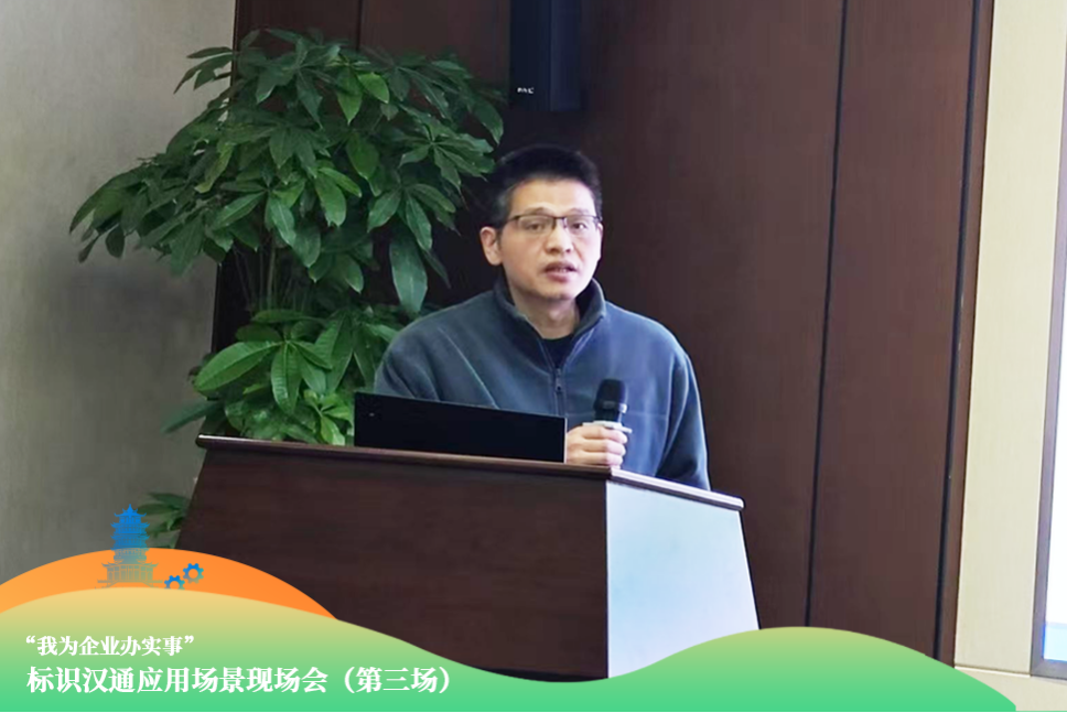 2024年12月18日,“我為企業(yè)辦實(shí)事”標(biāo)識漢通應(yīng)用場景現(xiàn)場會(第三場)走進(jìn)東湖高新。活動由中國信息通信研究院工業(yè)互聯(lián)網(wǎng)與物聯(lián)網(wǎng)研究所中部運(yùn)營中心副主任黃子沛主持。