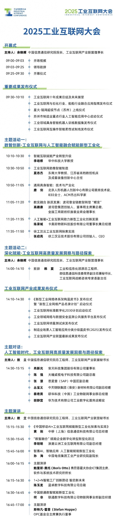 【首發(fā)】2025工業(yè)互聯(lián)網(wǎng)大會(huì)開(kāi)幕式議程公布