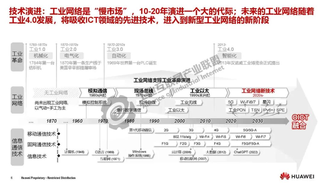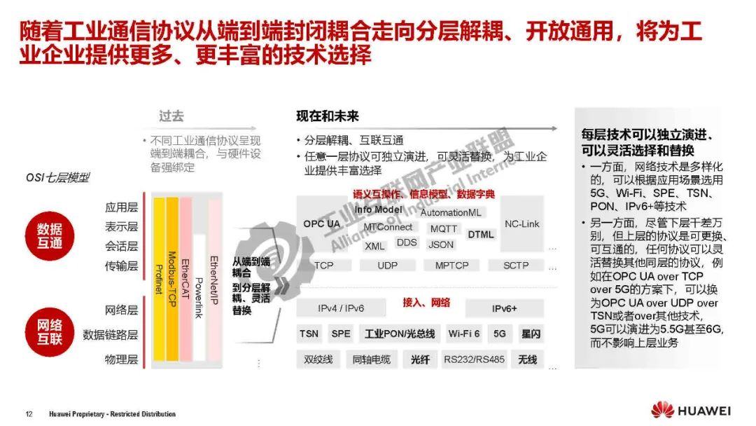 郭小龍介紹,工業網絡是工業企業生產經營活動中所使用的網絡,是構建工業環境人、機、物全面互聯的基礎設施,包含網絡互聯和數據互通兩個層次。工業網絡是“慢市場”,10-20年演進一個大的代際;未來的工業網絡隨著工業4.0發展,將吸收ICT領域的先進技術,進入到新型工業網絡的新階段。隨著工業通信協議從端到端封閉耦合走向分層解耦、開放通用,將為工業企業提供更多、更豐富的技術選擇。