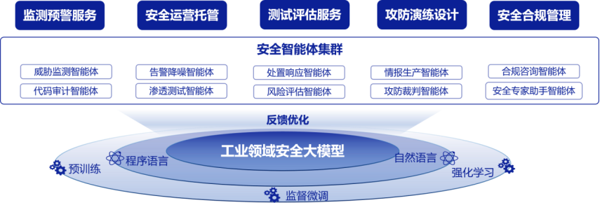 當(dāng)前,大模型、人工智能技術(shù)正在加速向各行各業(yè)賦能,帶動傳統(tǒng)產(chǎn)業(yè)向智能化、數(shù)字化深度演進(jìn),與此同時,工業(yè)領(lǐng)域網(wǎng)絡(luò)和數(shù)據(jù)安全形勢日益復(fù)雜,傳統(tǒng)技術(shù)手段難以滿足現(xiàn)階段安全防護(hù)需求。在此背景下,中國信息通信研究院依托工業(yè)互聯(lián)網(wǎng)安全技術(shù)試驗與測評工業(yè)和信息化部重點實驗室,基于工業(yè)領(lǐng)域網(wǎng)絡(luò)安全和數(shù)據(jù)安全垂域大模型,結(jié)合多年安全領(lǐng)域的知識經(jīng)驗,打造了集安全監(jiān)測、滲透測試、安全合規(guī)管理等多種能力于一體的工業(yè)領(lǐng)域安全智能體公共服務(wù)平臺(以下簡稱平臺),旨在為工業(yè)企業(yè)構(gòu)筑起一道“智能感知、主動防御”的安全屏障。