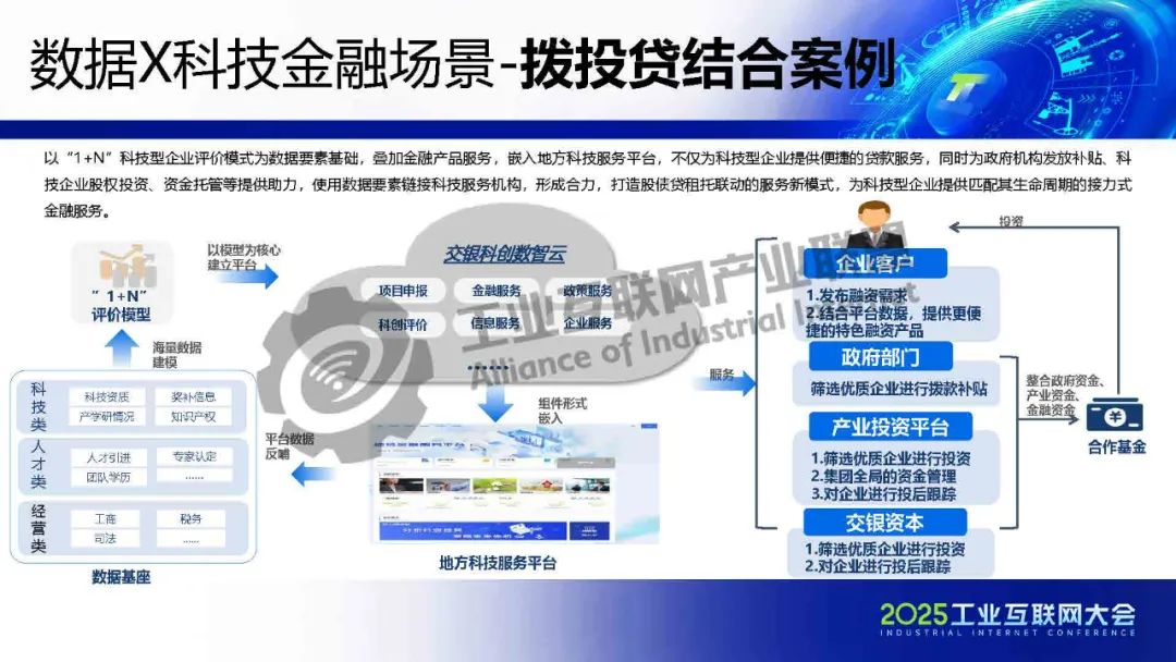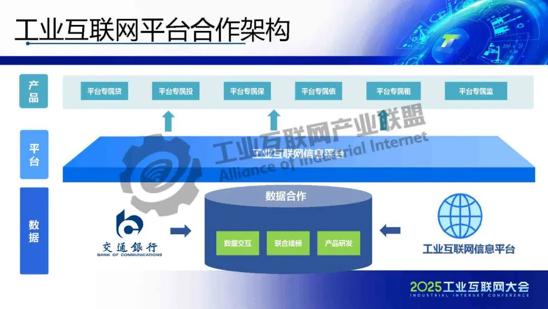 5月21日,在2025工業互聯網大會“工業互聯網產融合作專題活動”上,交通銀行公司機構業務部數字化應用部副高級經理葛鵬發表了《“數據X科技金融”接力式全場景綜合服務》的主題演講。