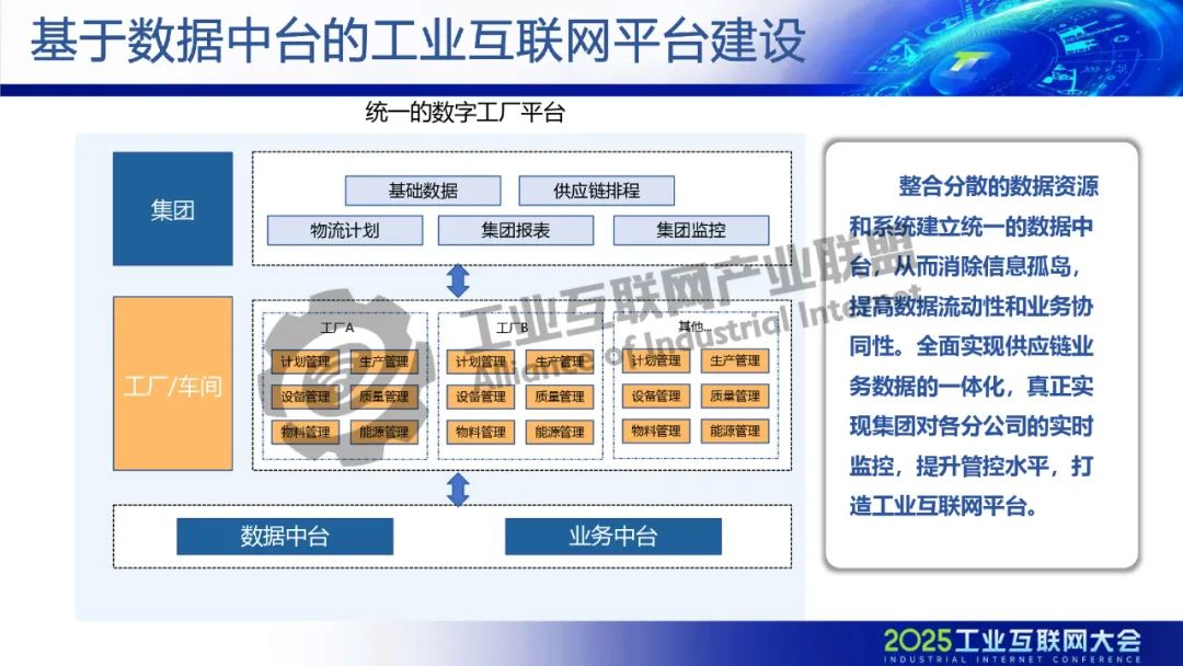整合分散的數據資源和系統建立統一的數據中臺,從而消除信息孤島,提高數據流動性和業務協同性。全面實現供應鏈業務數據的一體化,真正實現集團對各分公司的實時監控,提升管控水平,打造工業互聯網平臺。