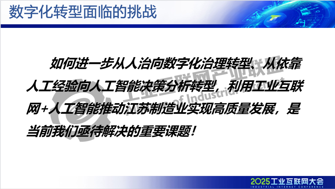 5月21日,在2025工業互聯網大會“工業互聯網產融合作專題活動”上,江蘇省經濟和信息化研究院副院長趙海建發表了《工業互聯網賦能江蘇制造業實現數字化轉型》的主題演講。